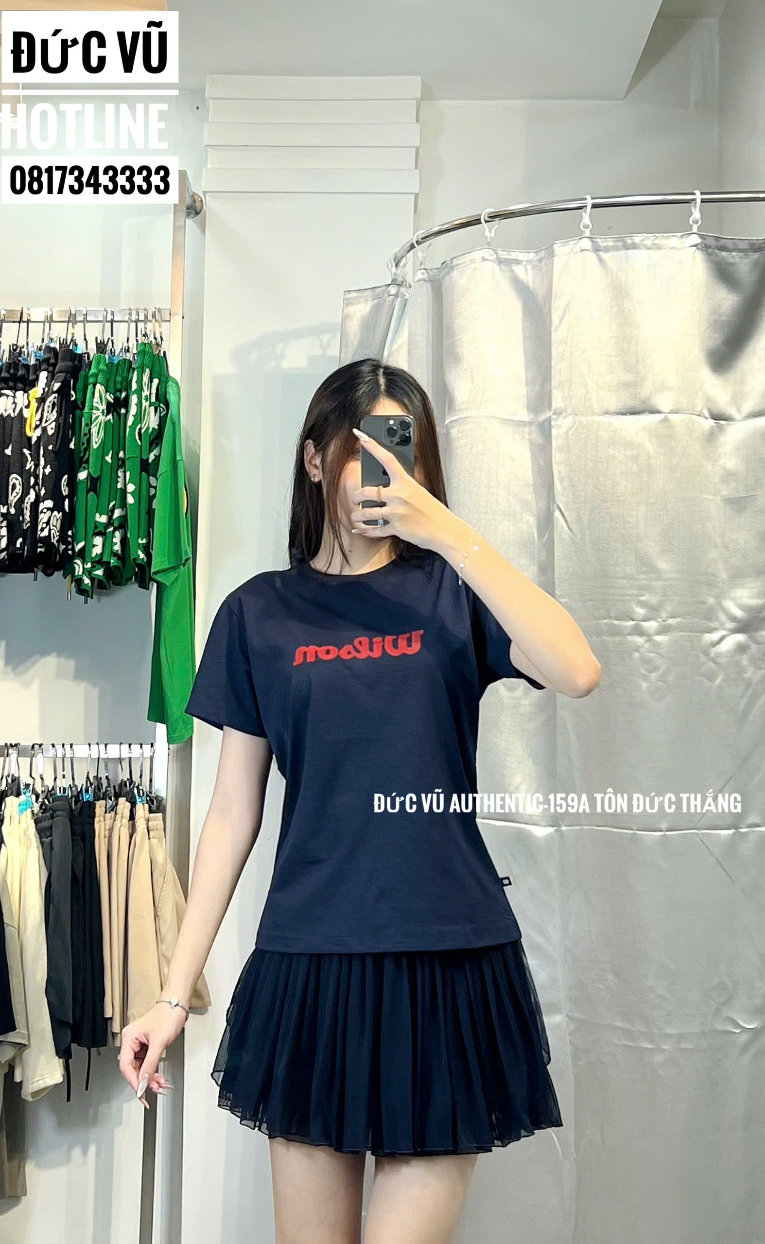 Áo thun: cotton pha, thoáng mát, form suông thoải mái, logo in trước ngực.