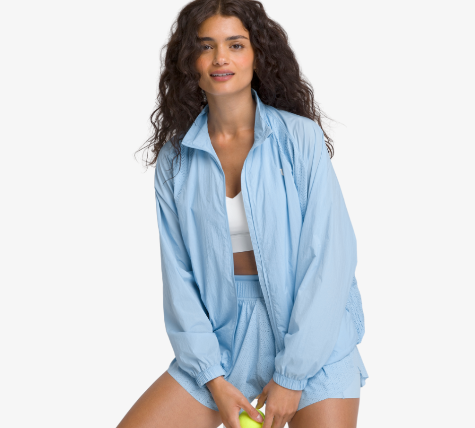 Set thể thao nữ Wilson – Áo khoác xanh pastel và chân váy tennis trắng