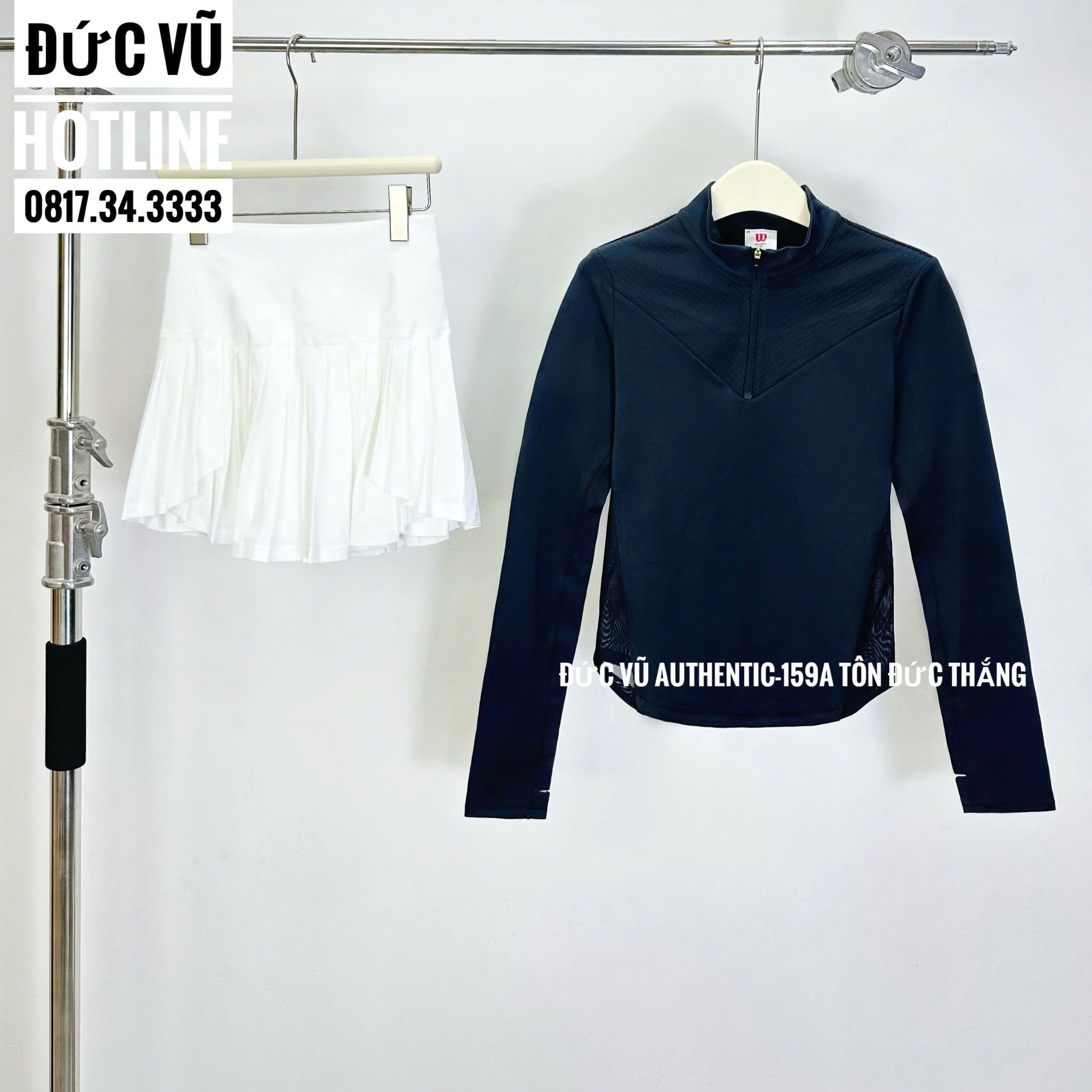 Bộ outfit thể thao nữ Wilson – Áo dài tay đen khóa kéo cổ cao và chân váy tennis đỏ